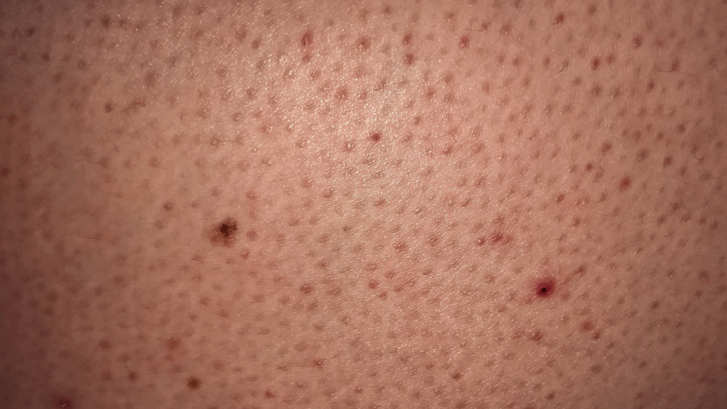 W przypadku silnego przesuszenia skóry może dochodzić do nadmiernego rogowacenia ujść mieszków włosowych, czyli komórki wyścielające mieszek włosowy się zrogowacieją i blokują ujścia.